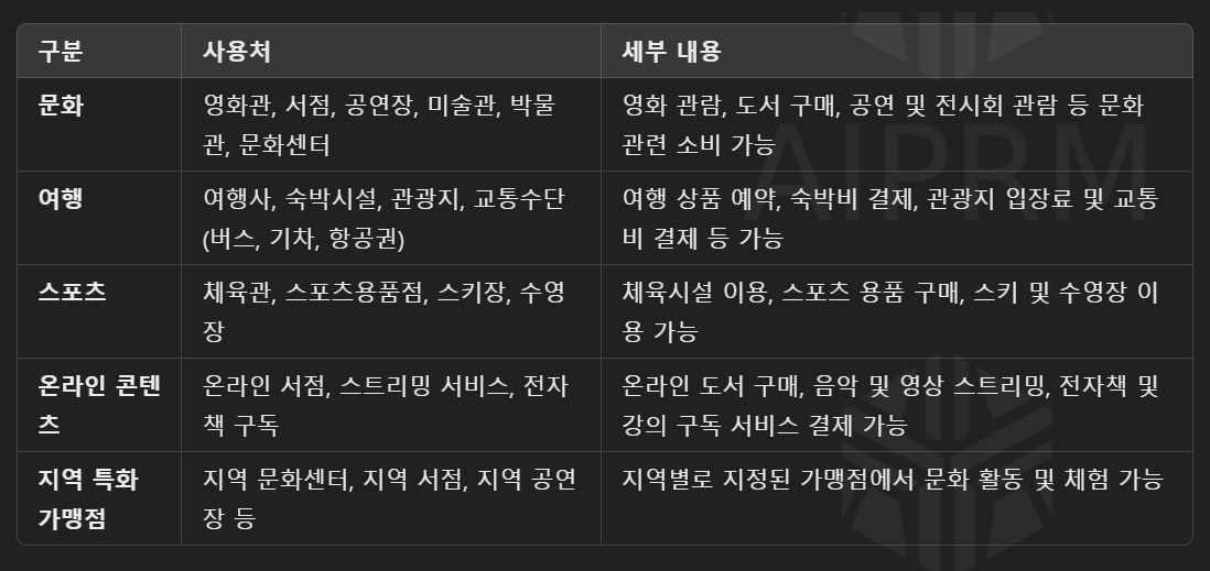 이 금액은 지정된 문화, 여행, 스포츠 관련 업종에서